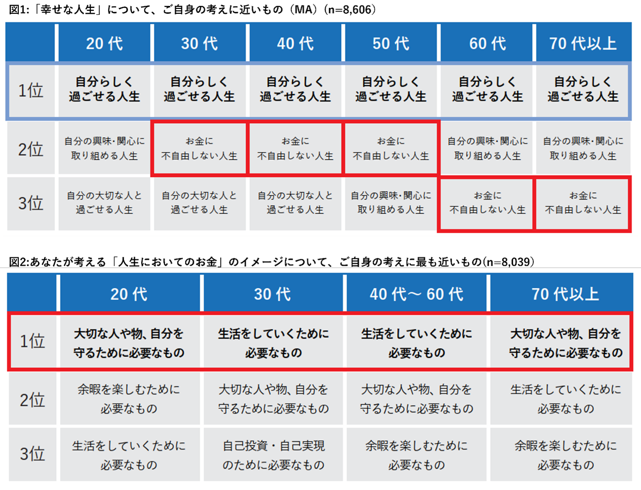 今回の結果から、多くの世代で共通して「お金は人生をより良くしていくために必要である一方、いまのままでは日本は貧しくなっていく」という考えの傾向がみられました。
