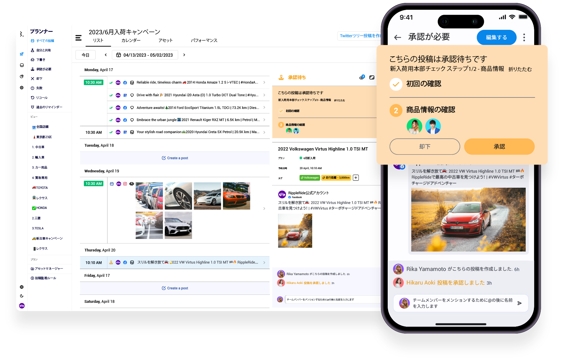 ■7つのソーシャルチャネルに特化した承認ワークフロー付き予約投稿管理機能