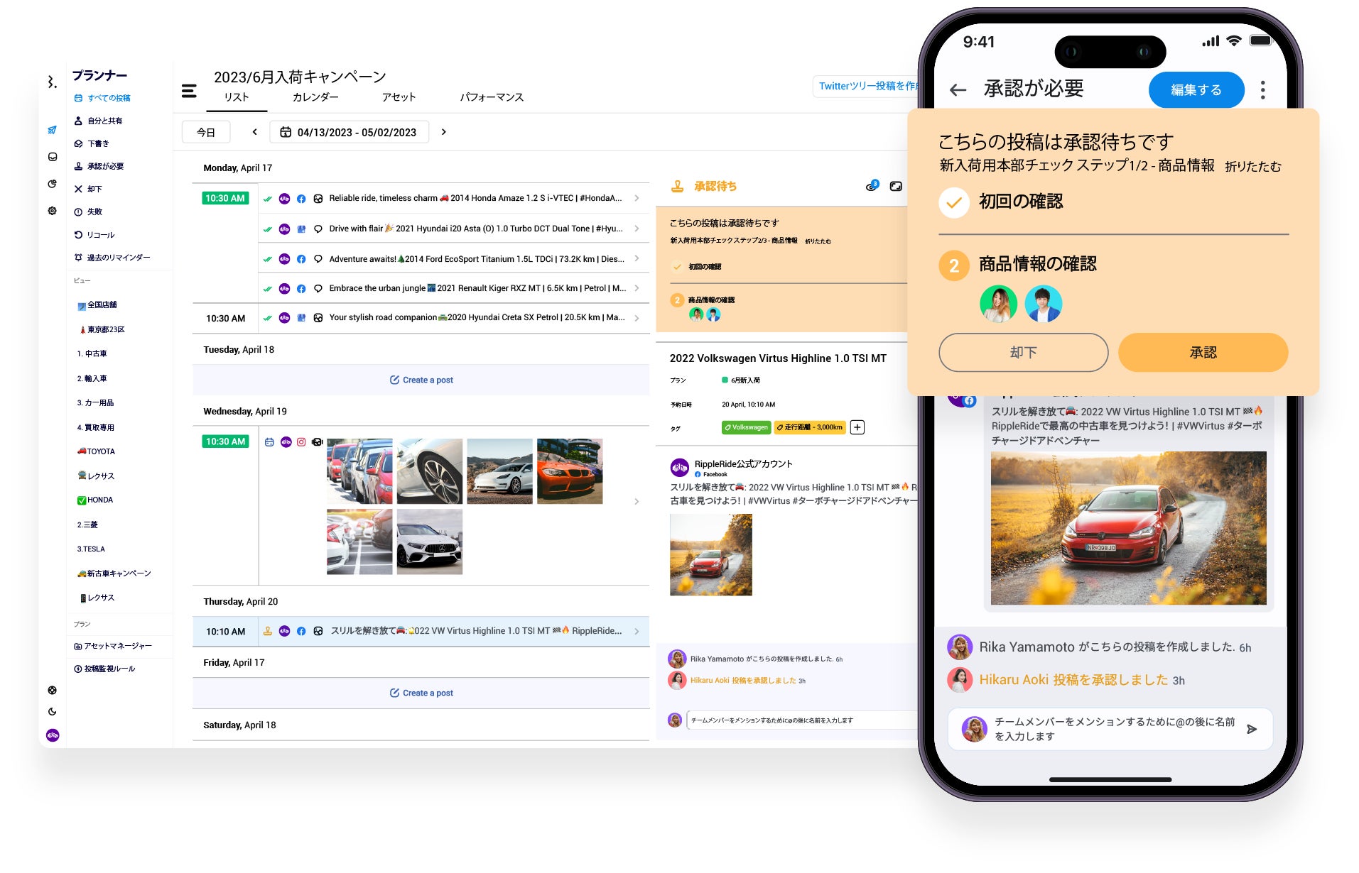 直感的なUIを意識し、投稿スケジュールを一目で把握できるため、コンテンツの計画立案や管理が効率化されます。