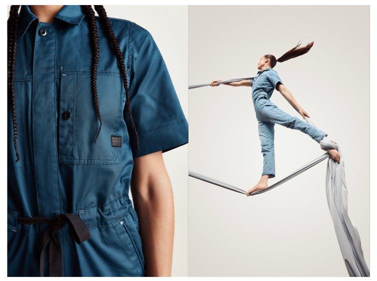 G-Star RAW、エアリアルシルクダンサーを起用した「ジャンプスーツ」カプセルコレクションを発売