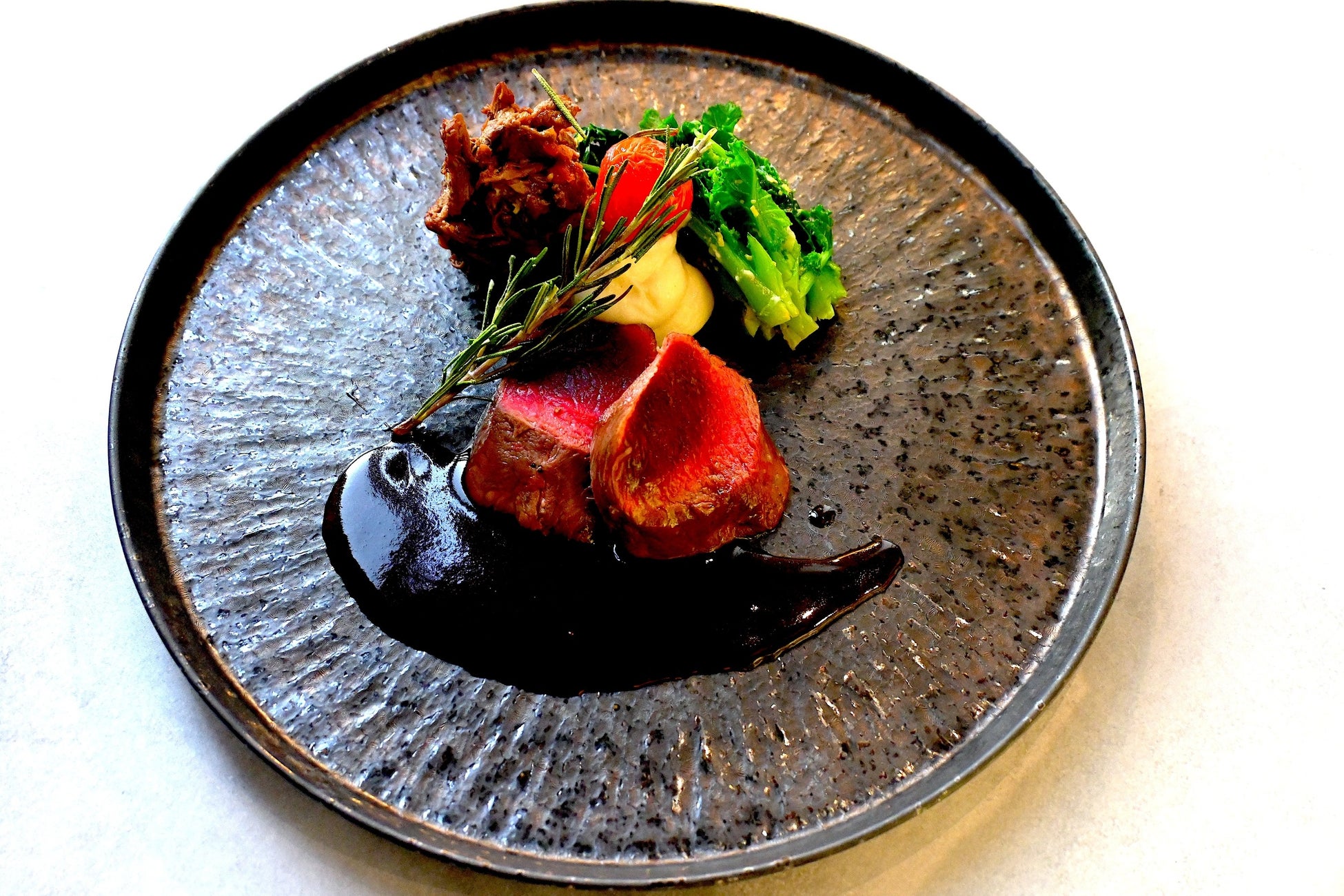 キザンワイナリー ギザンワイン赤をベースに仕上げた深みのあるソースに。じっくり調理した鹿肉と絶妙なハーモニーを奏でます。