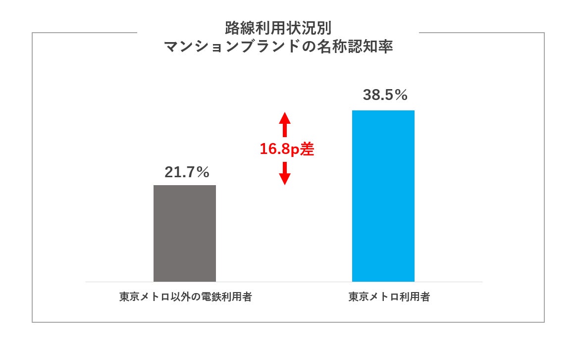 その結果、東京メトロ利用者は38.5%、東京メトロ以外の電鉄利用者は21.7%となり、16.8ポイントの差が確認されました。