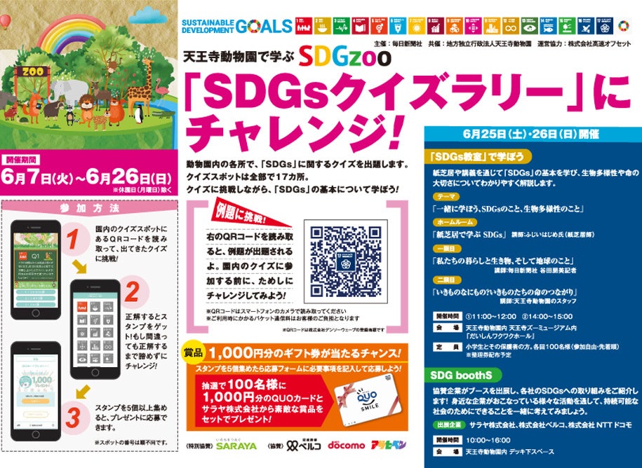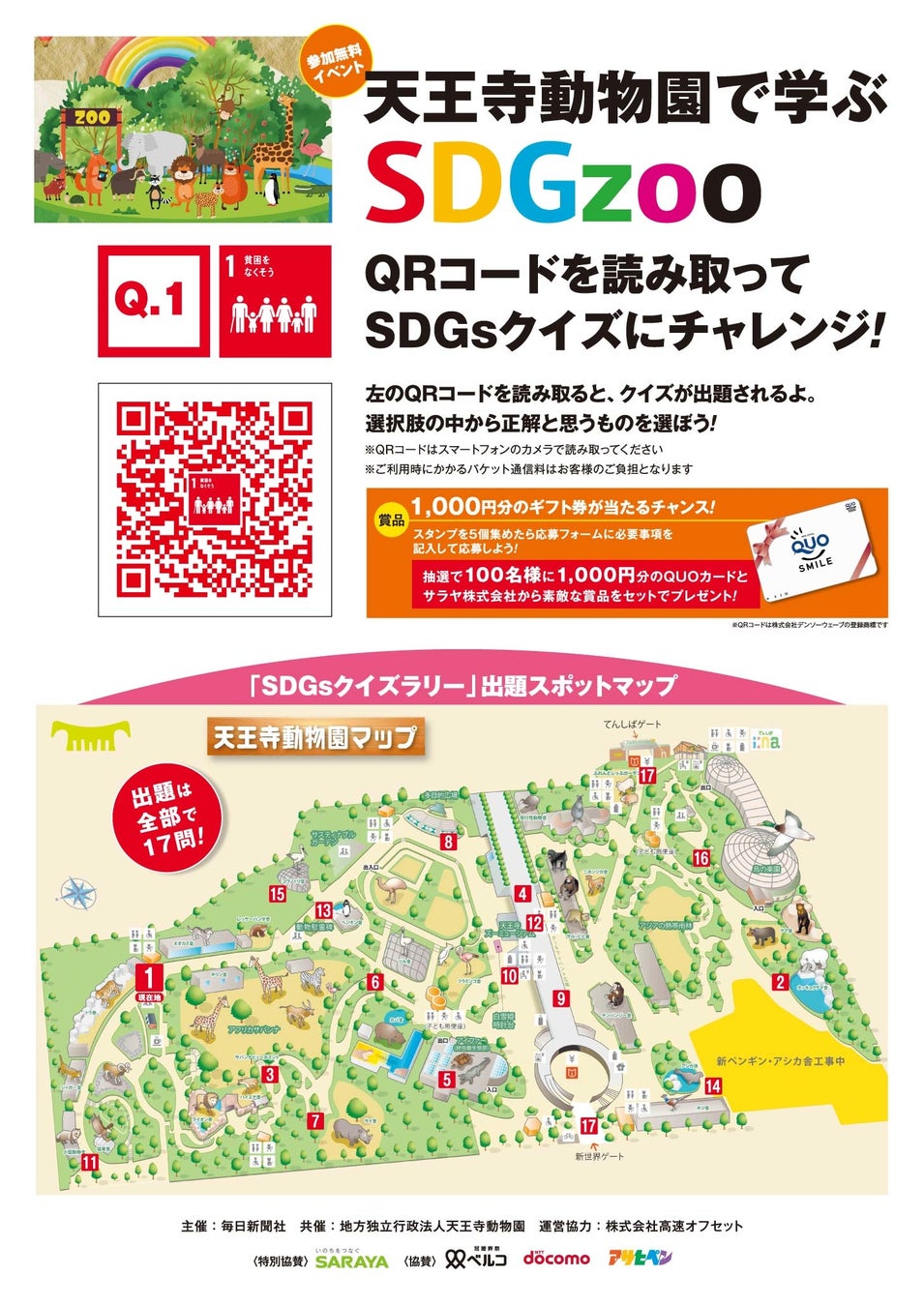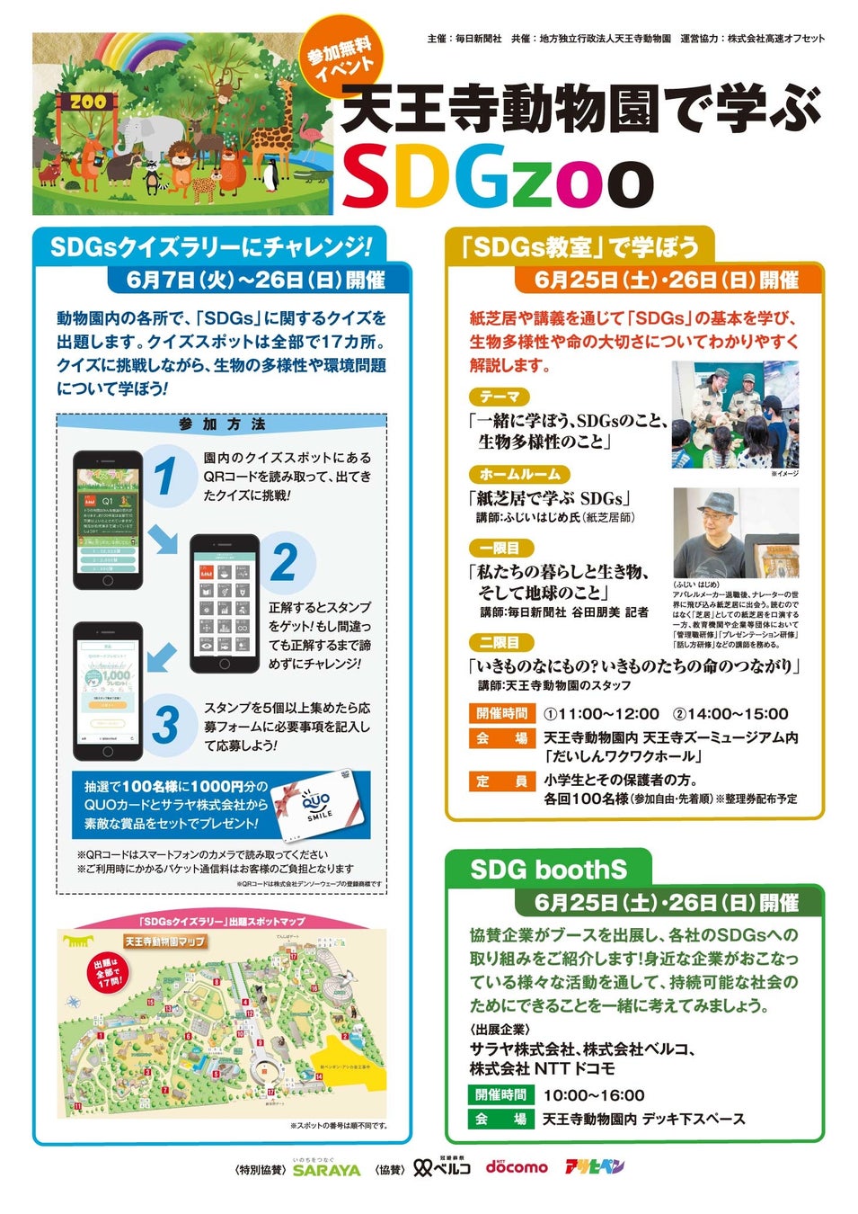SDGsの貢献活動に取り組むベルコは、「4.質の高い教育をみんなに」「15.陸の豊かさを守ろう」の普及と地域活性化を目指し、「天王寺動物園で学ぶSDGzoo」に協賛、SDGz活動の普及の参加させていただきます。