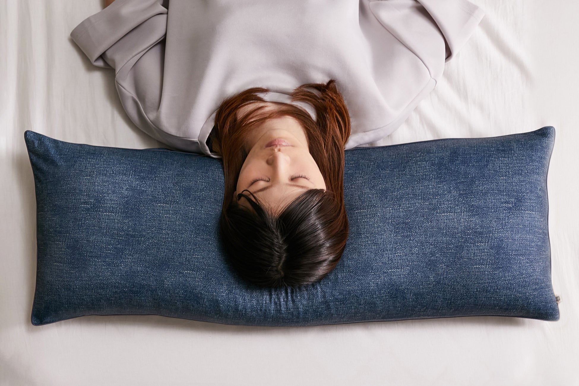 シングルベッドにぴったりなロングサイズ(約90×35cm)で、寝返りを打っても枕から頭が落ちにくく、寝違えを防いで朝まで快眠。大人2人が寝転べるほどの長い枕なので、子どもとの添い寝にもぴったり。ぎゅっと抱きしめても心地よく、抱き枕としてもおすすめです。
