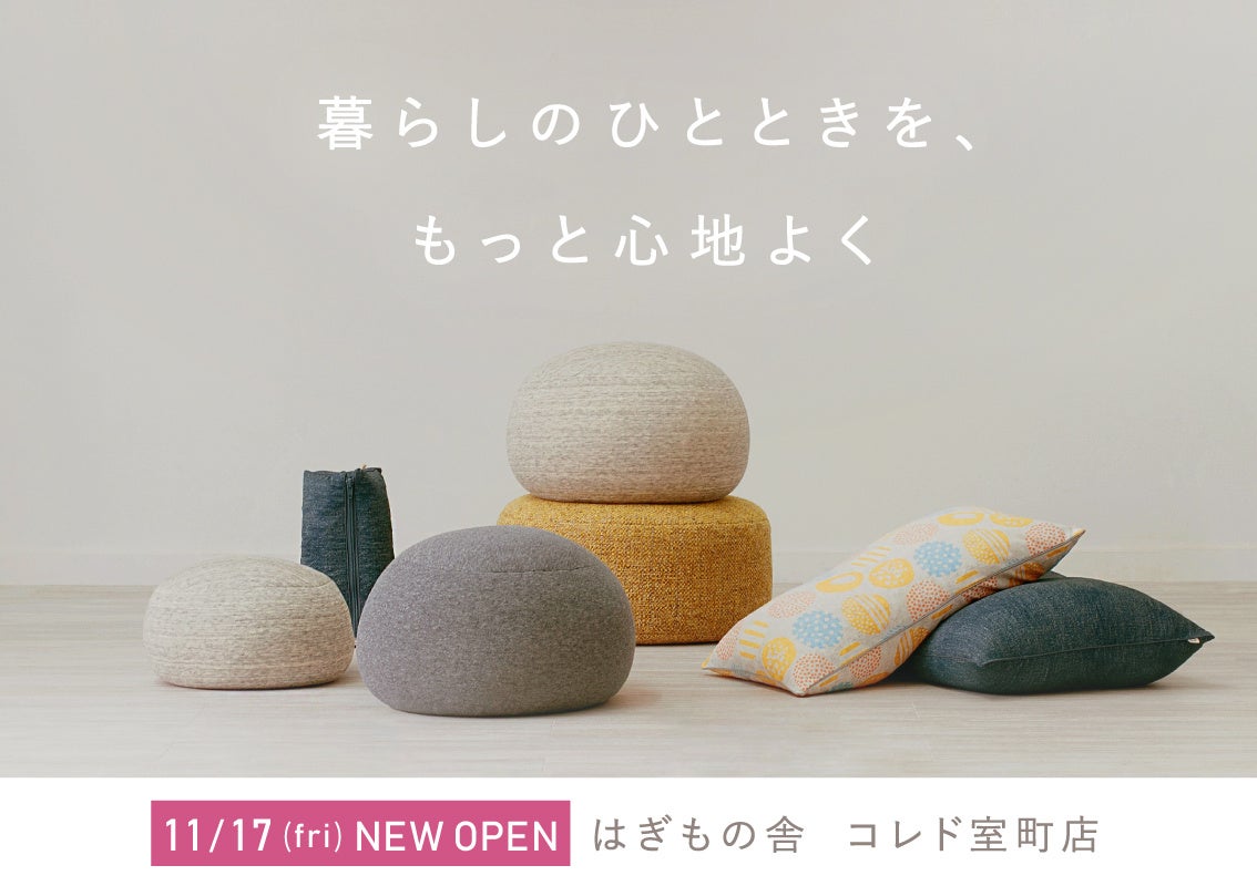 【東京・日本橋】 ふわもちクッション・枕のお店「はぎもの舎」が、コレド室町3に11月17日(金)オープン! オープン記念ノベルティ配布・大抽選会開催。
