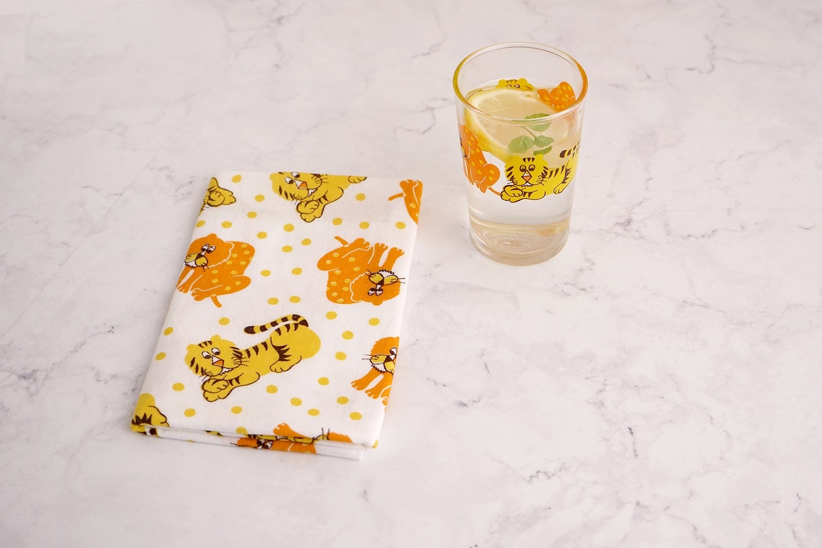 手ぬぐいは職人が1色ずつ手作業で染める「手捺染」で染めました。アデリアレトログラスと同様の懐かしさを感じられる繊細なデザイン再現と鮮やかな色合いをお楽しみいただけます。手を拭く以外にも、バンダナやランチョンマットといったテーブルウェアとしてお使いいただくのもおすすめ。