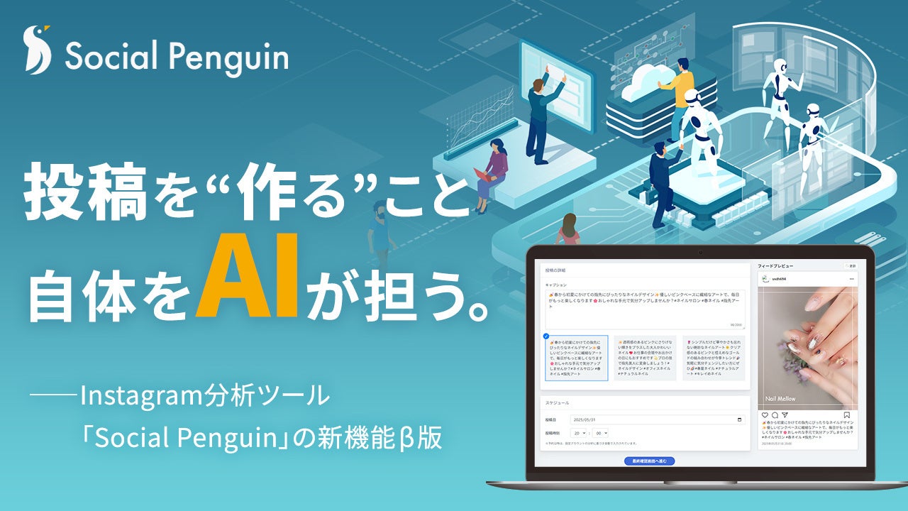Instagram投稿の文と画像文字をAIが自動生成。分析ツールSocial Penguinがβ版機能を公開。