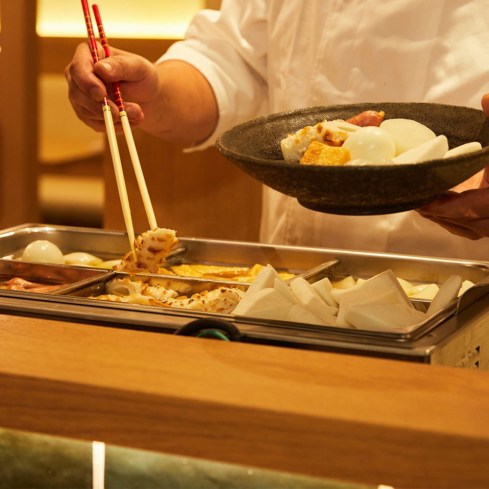 じっくり長時間仕込んでいるので各種おでんにはしっかりと出汁が染み込んでおり、料理長が厳選した日本酒や焼酎などといったドリンクとの相性も抜群です。
