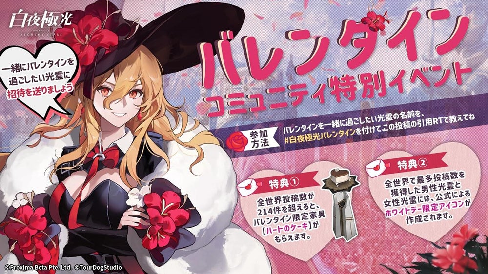 バレンタインコミュニティ特別イベントを開催中です! 一緒にバレンタインを過ごしたい光霊を教えて下さい! 2月14日にちなんで、全世界からの投稿が214件を超えた場合はバレンタイン限定家具【ハートのケーキ】を配布いたします!