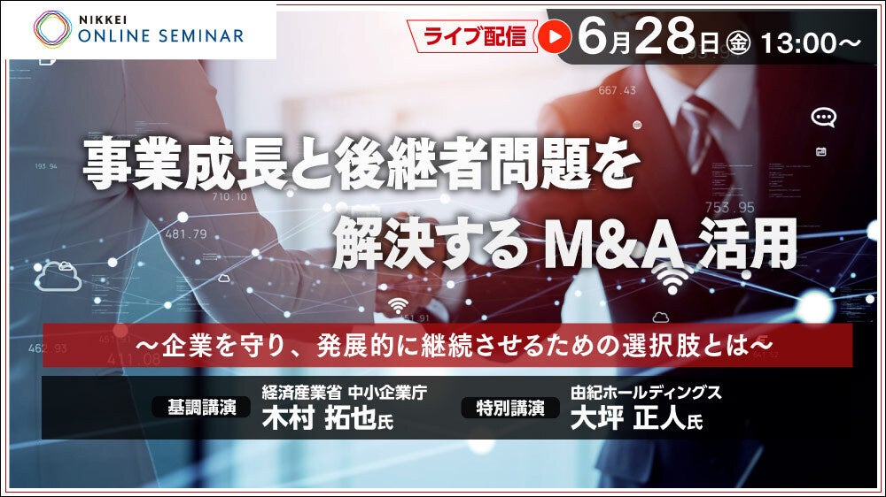 オーナーズ代表の作田隆吉、6月28日(金)開催の日経オンラインセミナー「事業成長と後継者問題を解決するM&A活用」に登壇