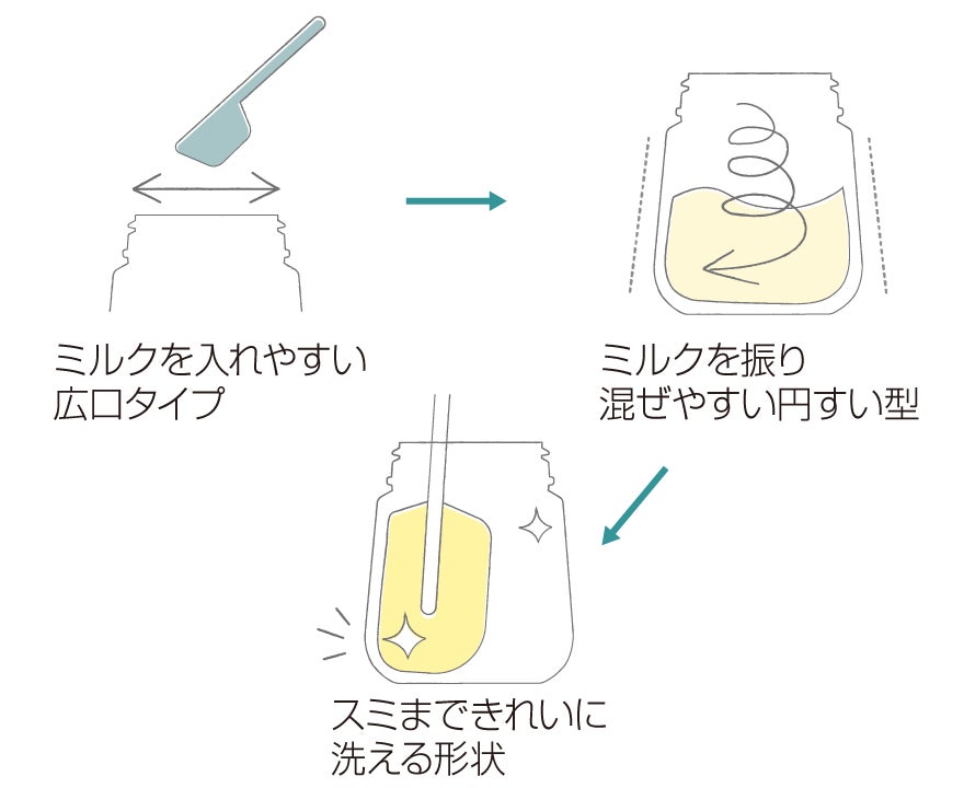毎日使う哺乳びんだから、「赤ちゃんのペースで飲める」を目指した乳首と使いやすさにこだわりました。パパ、ママ、家族みんなの育児をサポートする哺乳びんです。