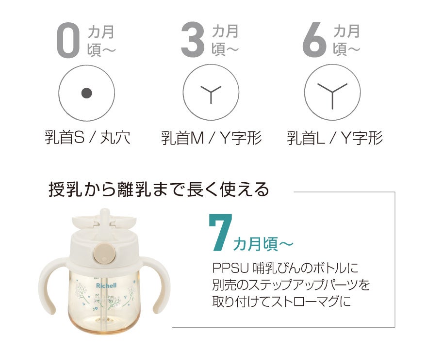 哺乳びんからストローマグへステップアップできるパーツも取り揃えています。