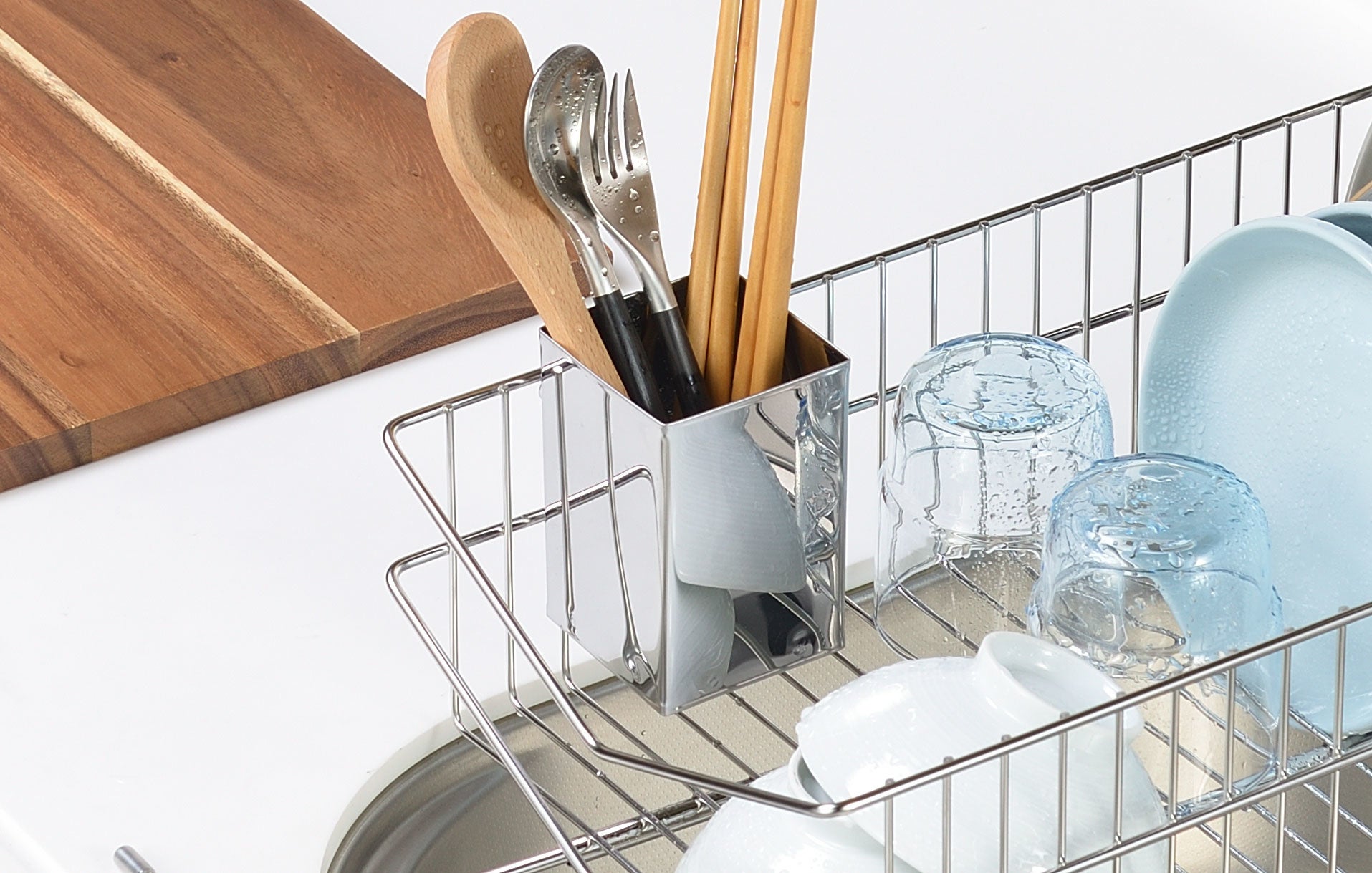 ・ステンレス製箸立ては、底面がパンチングになっているので、しっかり水切れできます。