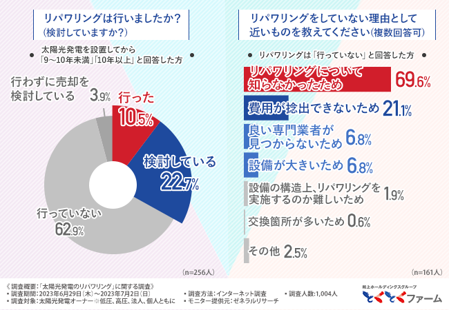 そこで今回、太陽光メンテナンスの総合専門会社『とくとくサービス』(https://wajo-holdings.jp/service/)を運営する株式会社和上ホールディングスは、太陽光発電オーナーを対象に、「太陽光発電のリパワリング」に関する調査を実施しました。