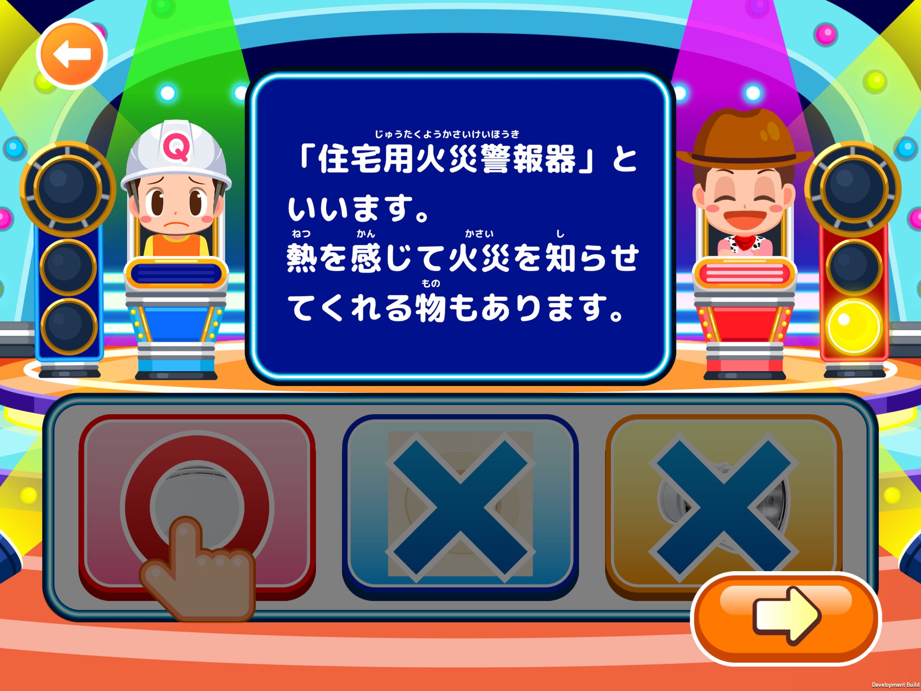 “せっかち”“慎重”など、さまざまな性格をもつ対戦相手(コンピューター)と競い合って、火災・災害や防災設備などに関するクイズに早押しで回答し、3問先取することを目指すゲームです。