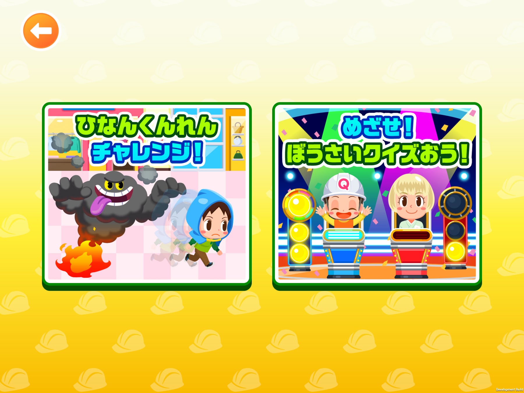 「めざせ!ぼうさいマスター!」では、「ひなんくんれんチャレンジ!」と「めざせ!ぼうさいクイズおう!」の2種類のゲームが体験できます。