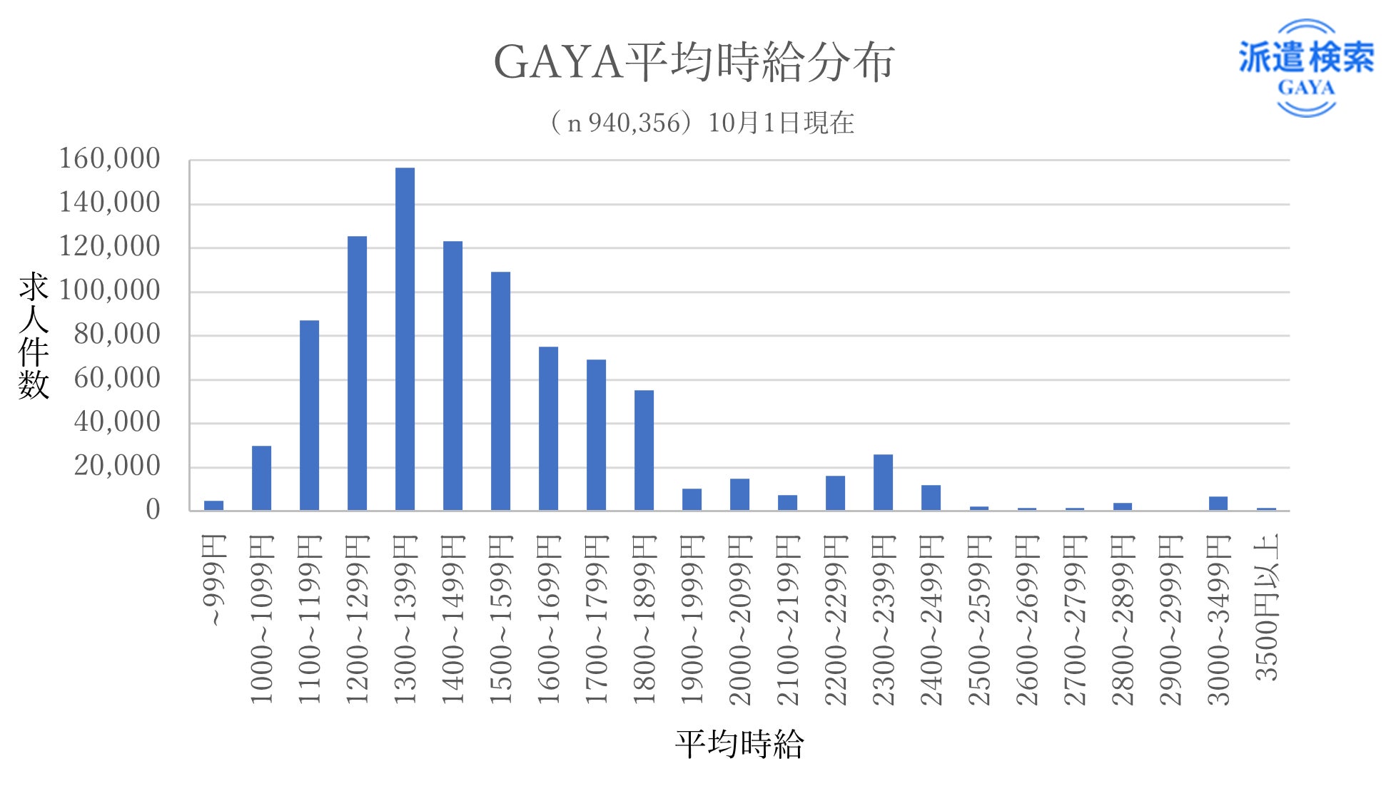 【10月度派遣求人数】GAYA派遣求人の平均時給「1,505円」、介護・物流現場の人手不足続く