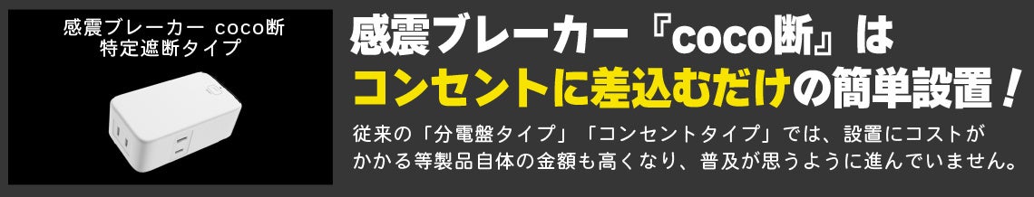 震災時の二次災害である通電火災の主な原因は、地震などにより停電した後、復旧時に転倒したストーブや照明器具に電気が通電することで散乱した室内で電化製品に再度電気が入り、火災が発生するケースなどがあります。「感震ブレーカーcoco断」は電気の供給を部分的に遮断することで通電火災を防ぐことを目的としています。