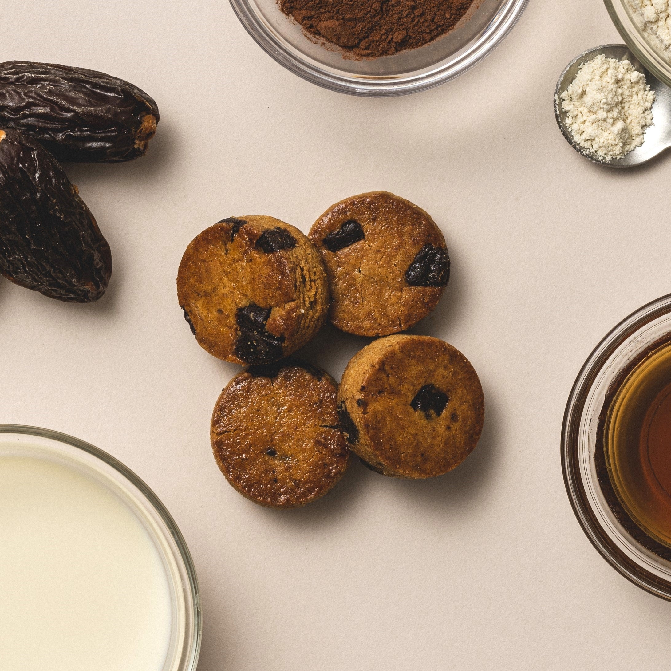 タンパク質豊富な「大豆粉」に、食物繊維やβ-カロテンが豊富なスーパーフード「デーツ」を練りこんで、メープルシロップで甘みをつけた、砂糖不使用のクッキー。