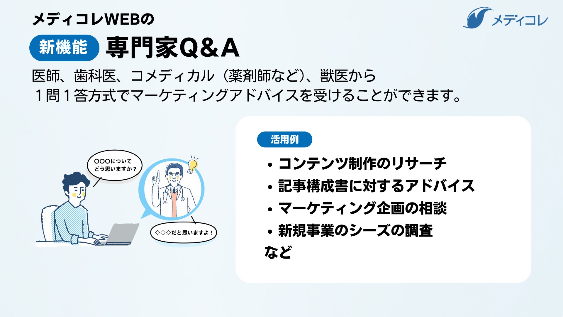 専門家Q&A機能が追加されたメディコレWEBとは?