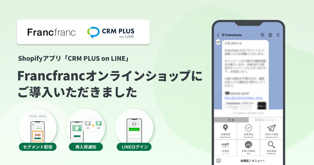 Shopifyアプリ「CRM PLUS on LINE」がFrancfrancオンラインショップに導入!ID連携を活用し、LINEを通じた購買体験向上へ