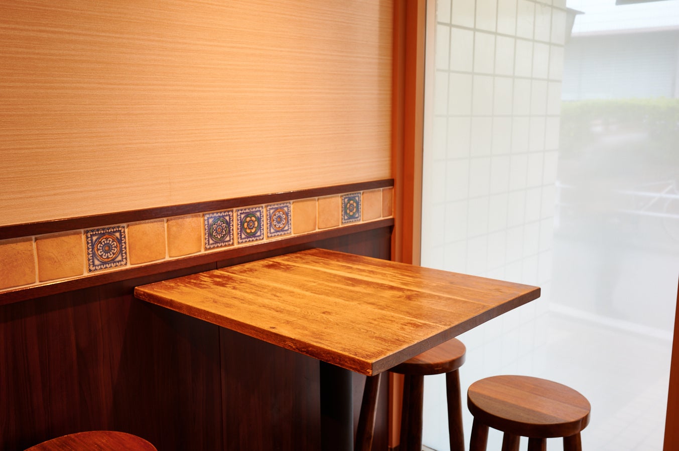 店内は白を基調とした清潔感のある空間で、木製のテーブルと柔らかな自然光が演出する落ち着きのある雰囲気を感じていただけます。