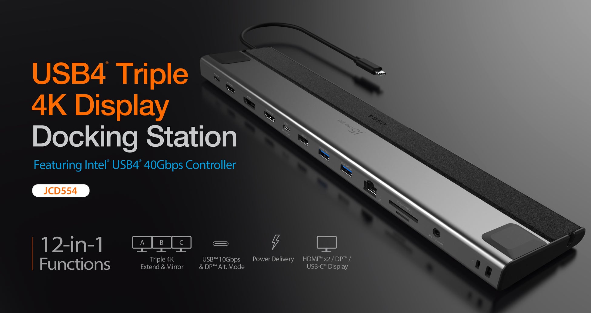 j5create、USB-Cモニターやスマートグラスにも接続可能。USB4ドッキングステーション『USB4 Triple Display 12in1ドッキングステーションJCD554』を5月2日に発売