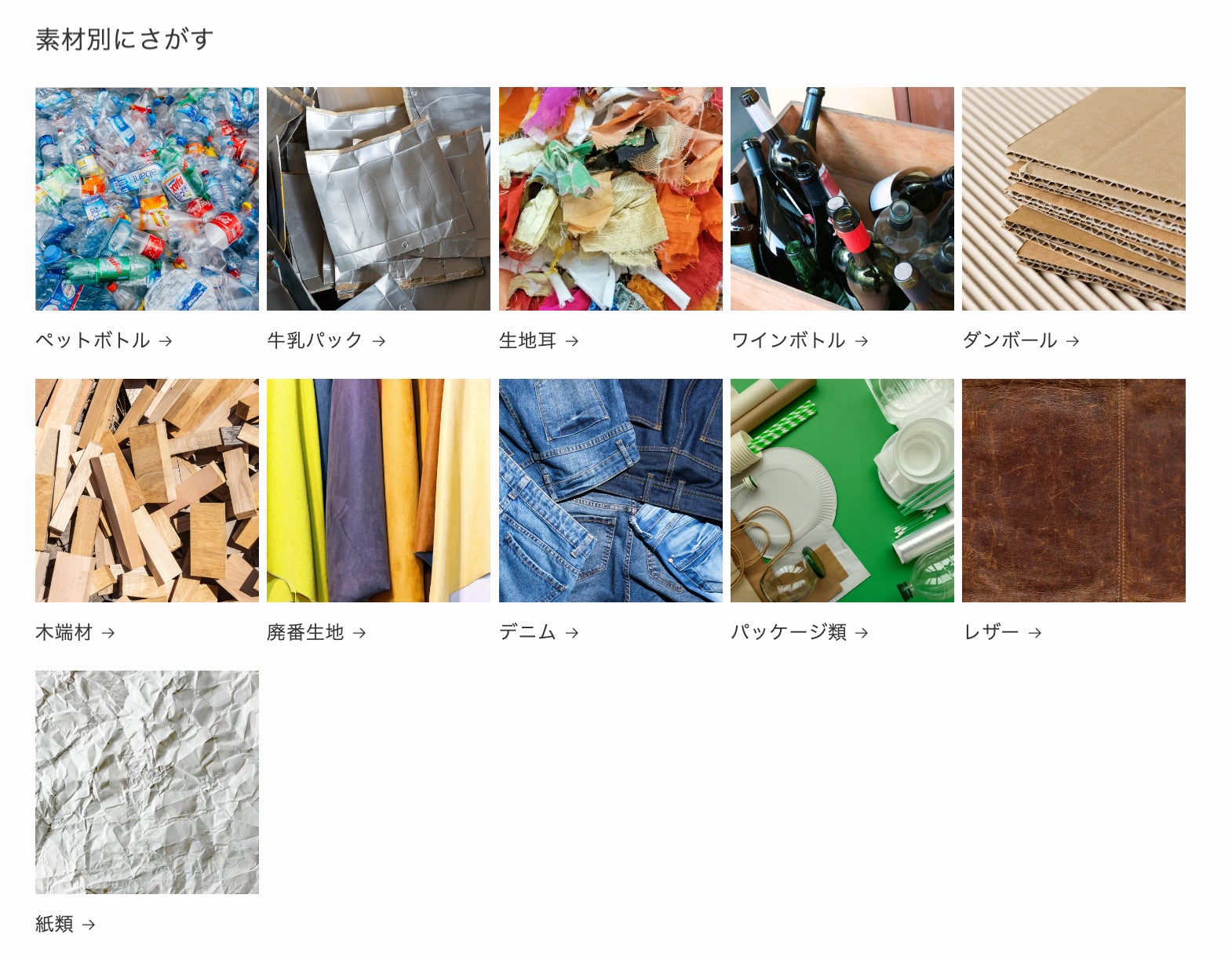販売する作品は、ART/GOODSなどアイテムごとのカテゴリーと共に、素材となっている廃棄物の種類からも選ぶことができるようになっており、ユーザー体験としても「廃棄物から生み出された商品を購入できる」を体現する仕組みとなっています。