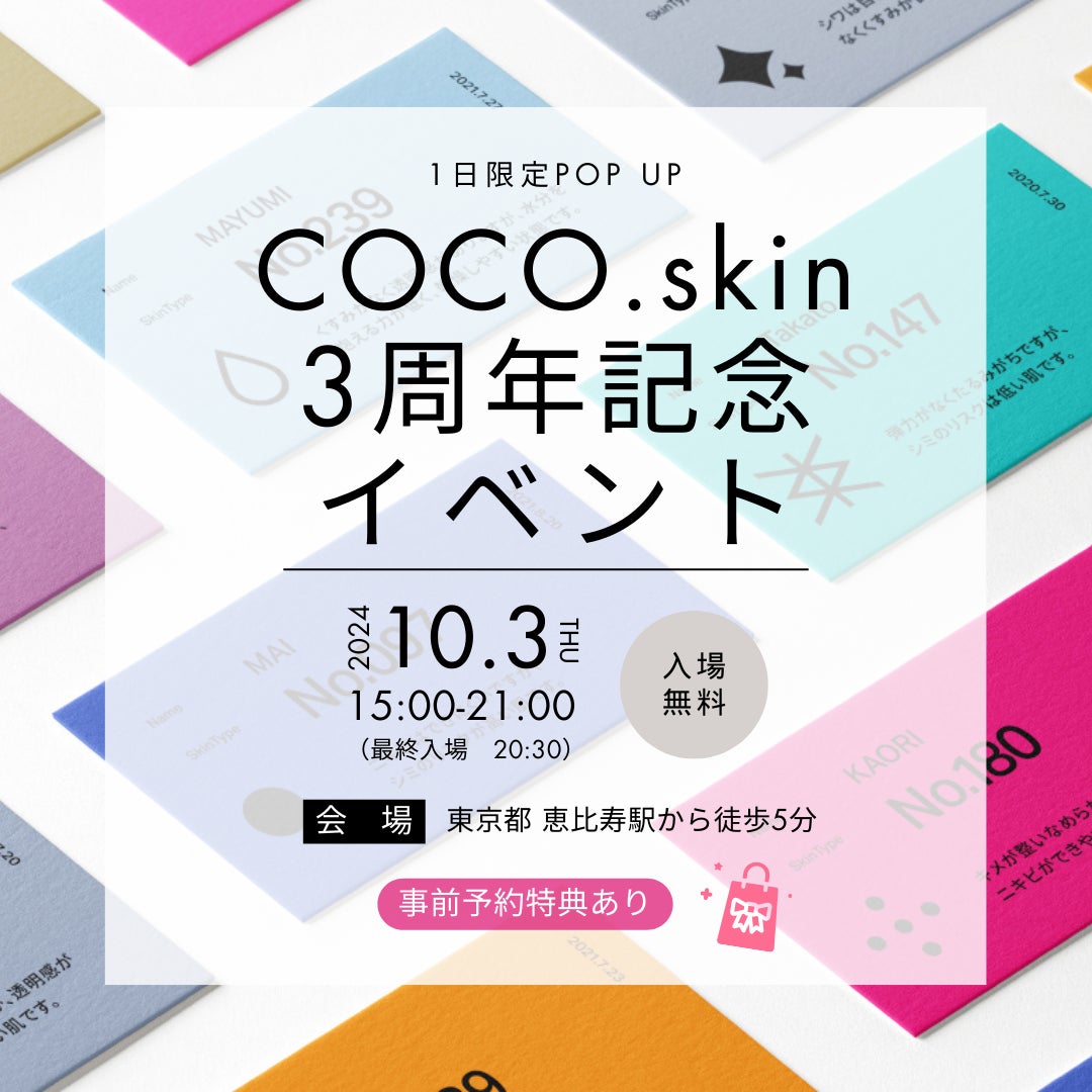 個々の肌にあったお手入れを推奨する、COCO.skinが3周年記念オフラインイベントを恵比寿で1日限定開催!