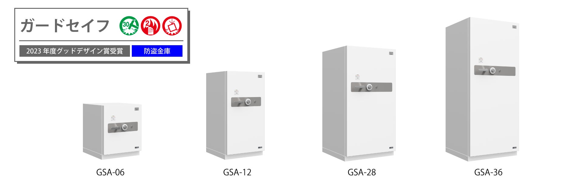 この度当社は、防盗金庫「ガードエース」「ガードセイフ」「投入金庫」、耐火金庫「ファイアーエース」の合計4機種を新規開発し、安全・安心の性能をより洗練されたデザインでご提供することが可能になりました。また、「ガードエース」「ガードセイフ」「ファイアーエース」の3機種は2023年度グッドデザイン賞を受賞しました。当社の金庫としては初のグッドデザイン賞受賞となり、そのデザイン性と実用性において高い評価を受けています。