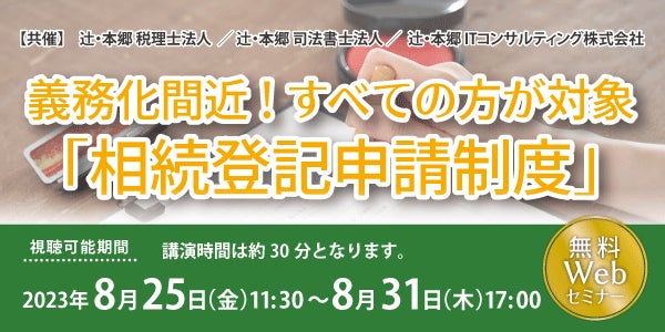 【8/25無料セミナー】2024年4月から義務化!相続不動産の名義変更について司法書士が徹底解説するセミナーを共催!