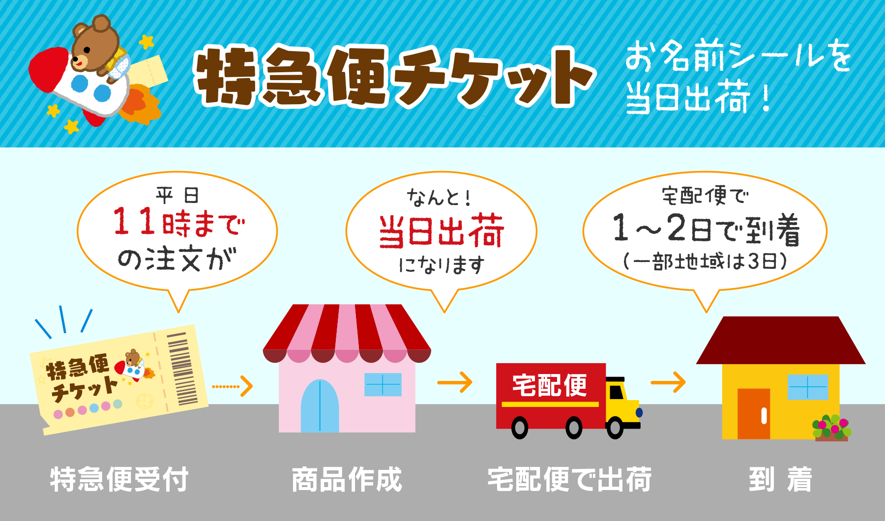 さらにお急ぎの方は、ご注文〜商品出荷までを早くする「特急便チケット」も取り扱っております。平日11時までにチケットと一緒に商品をご注文いただければ、当日出荷いたします。