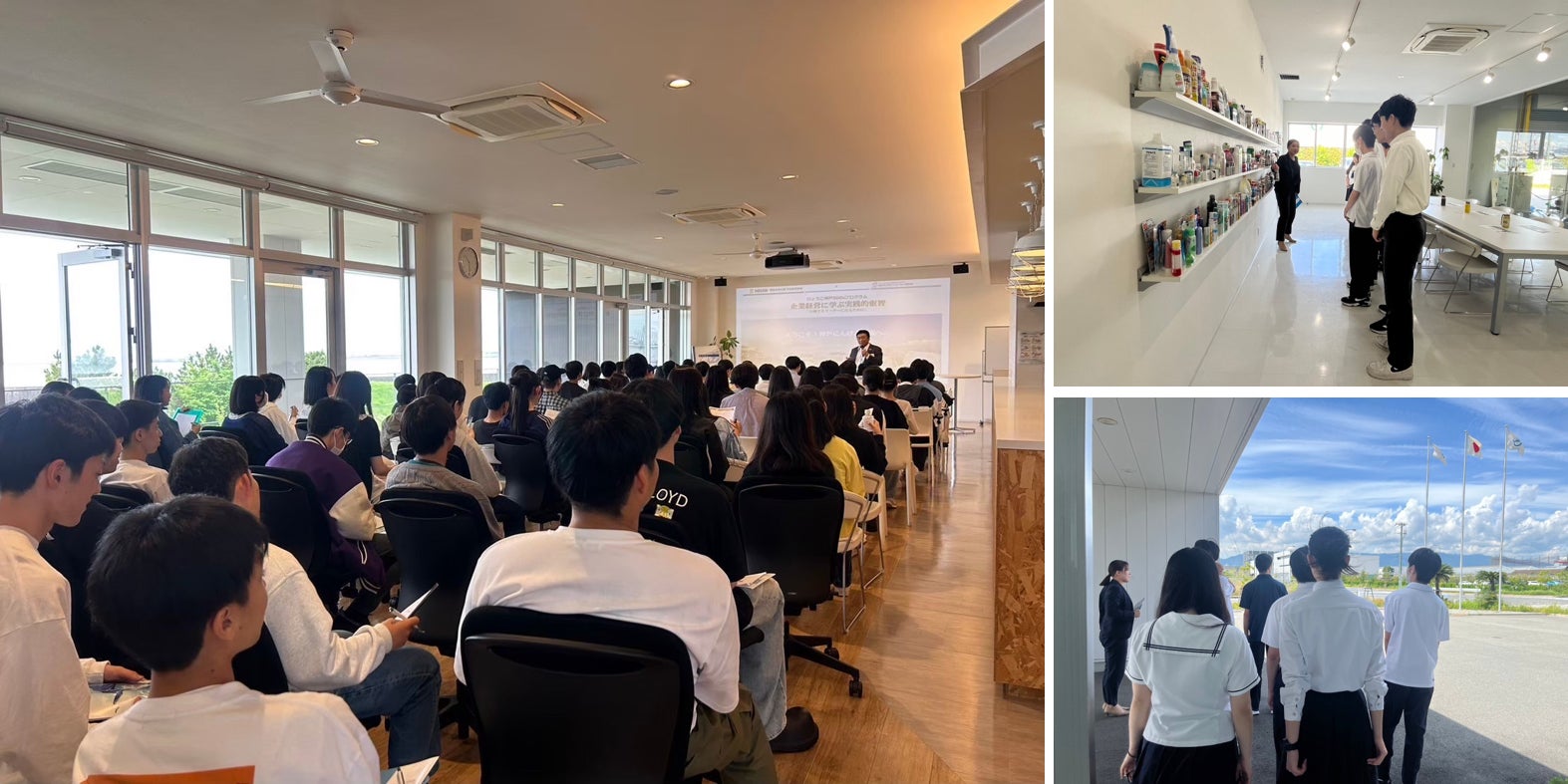 当社での受け入れは2024年4月30日から開始し、これまでに龍谷大学付属平安高等学校、彦根総合高等学校、神戸学院大学付属高等学校の学生のみなさま約150名にお越しいただいております。プログラム当日は工場も見学いただき、実際の機械も見ながら当社の取り組みの理解を深めます。この機会が学生にとって「何か新しいことを」始めるきっかけとなるよう、今後も積極的に受け入れを行っていきます。