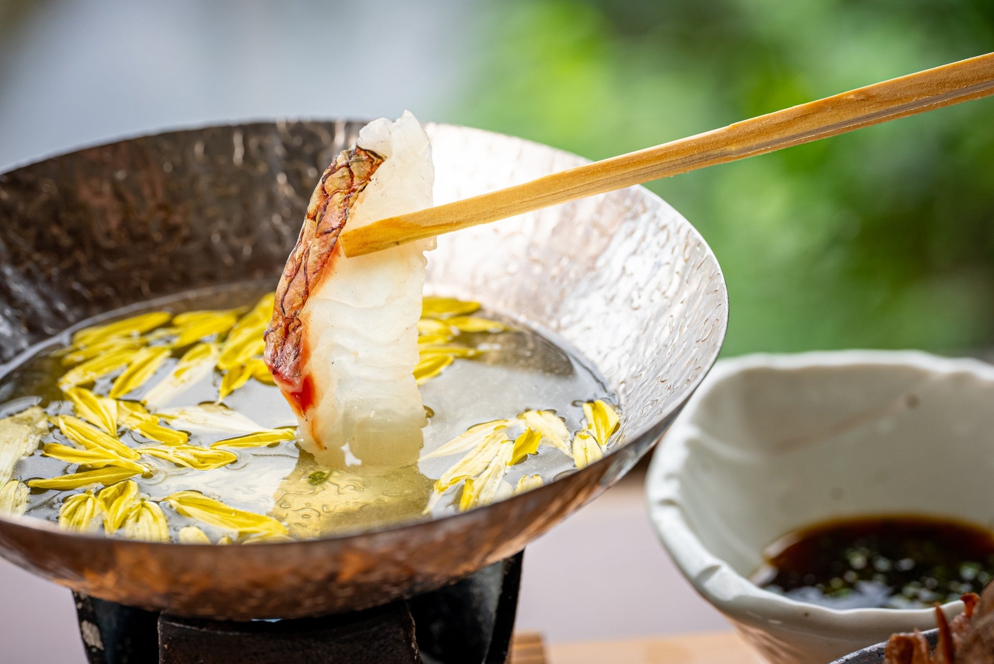 昆布などの旨みをしっかり詰め込んだお出汁でいただく、鯛のしゃぶしゃぶです。