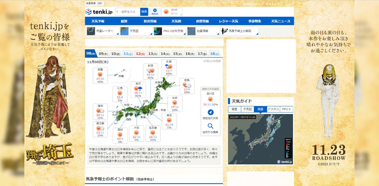 ~11月21日(火)から、1週間限定でtenki.jpトップページが作品仕様に~