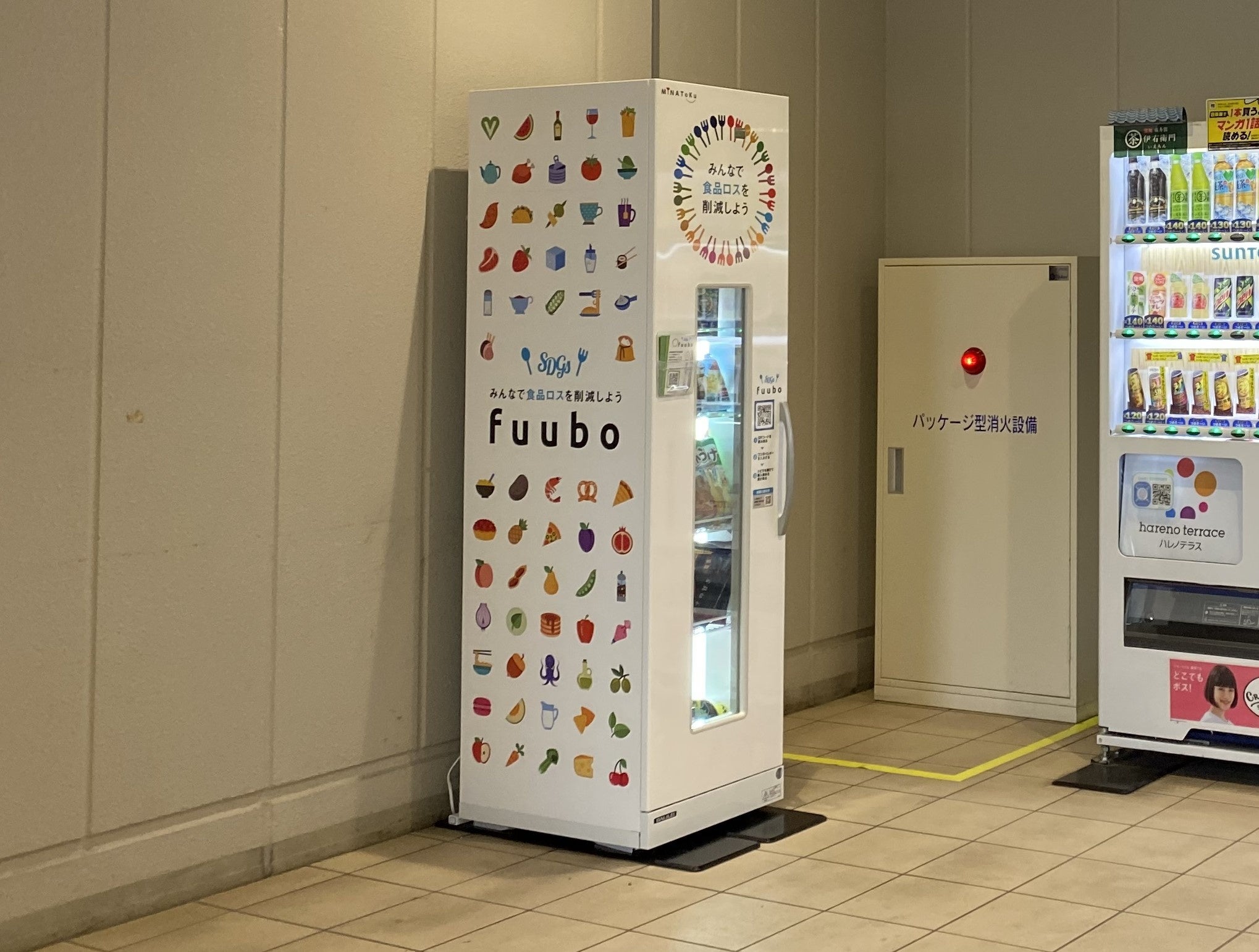みなとく株式会社(東京・台東)が開発した、食材などの廃棄を防ぐ無人販売機「fuubo(フーボ)」設置します。消費期限が近いことなどから小売店への流が難しくなった商品を扱い、市場価格の3~5割程度の価格で購入