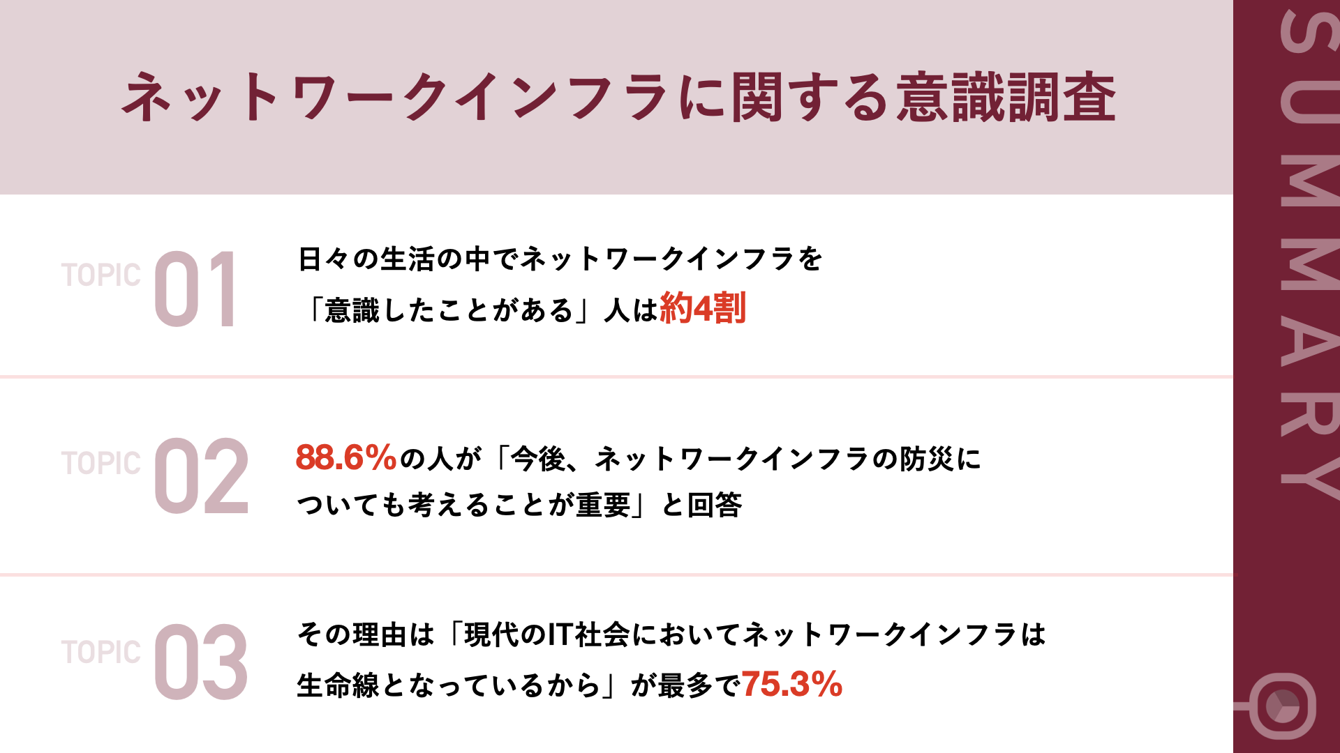 - 「ネットワークインフラ」の防災を重要視する理由、75.3%が「現代のIT社会においてネットワークインフラは生命線」と回答