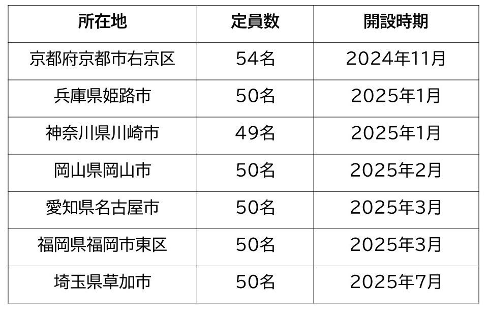 今後、ReHOPEは、2025年7月までの間に、7施設の開設を予定しております(2024年5月末現在)。
