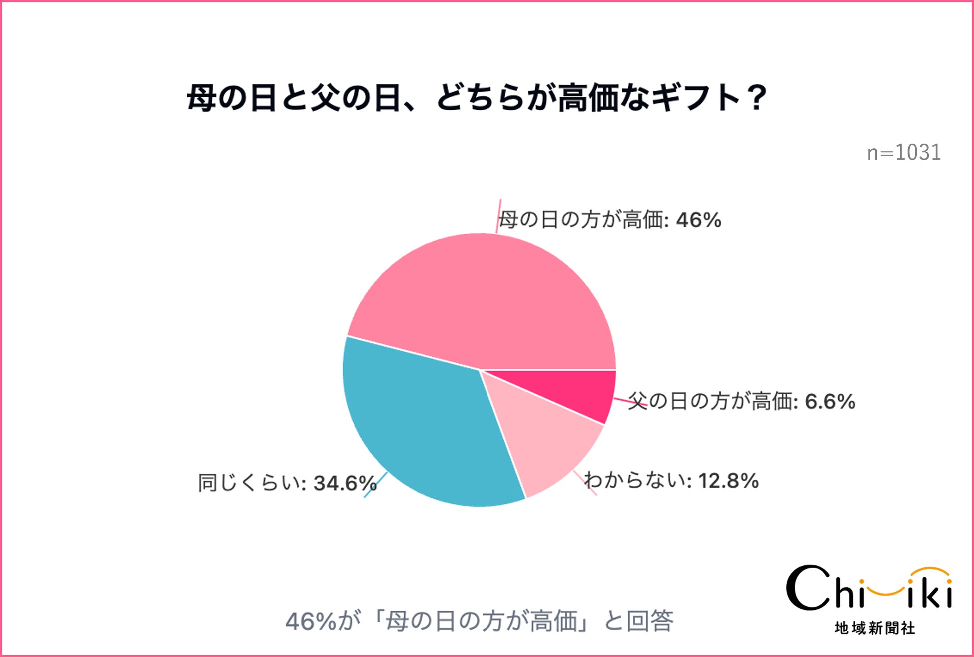 46%が「母の日の方が父の日より高価なギフトを贈る」と回答