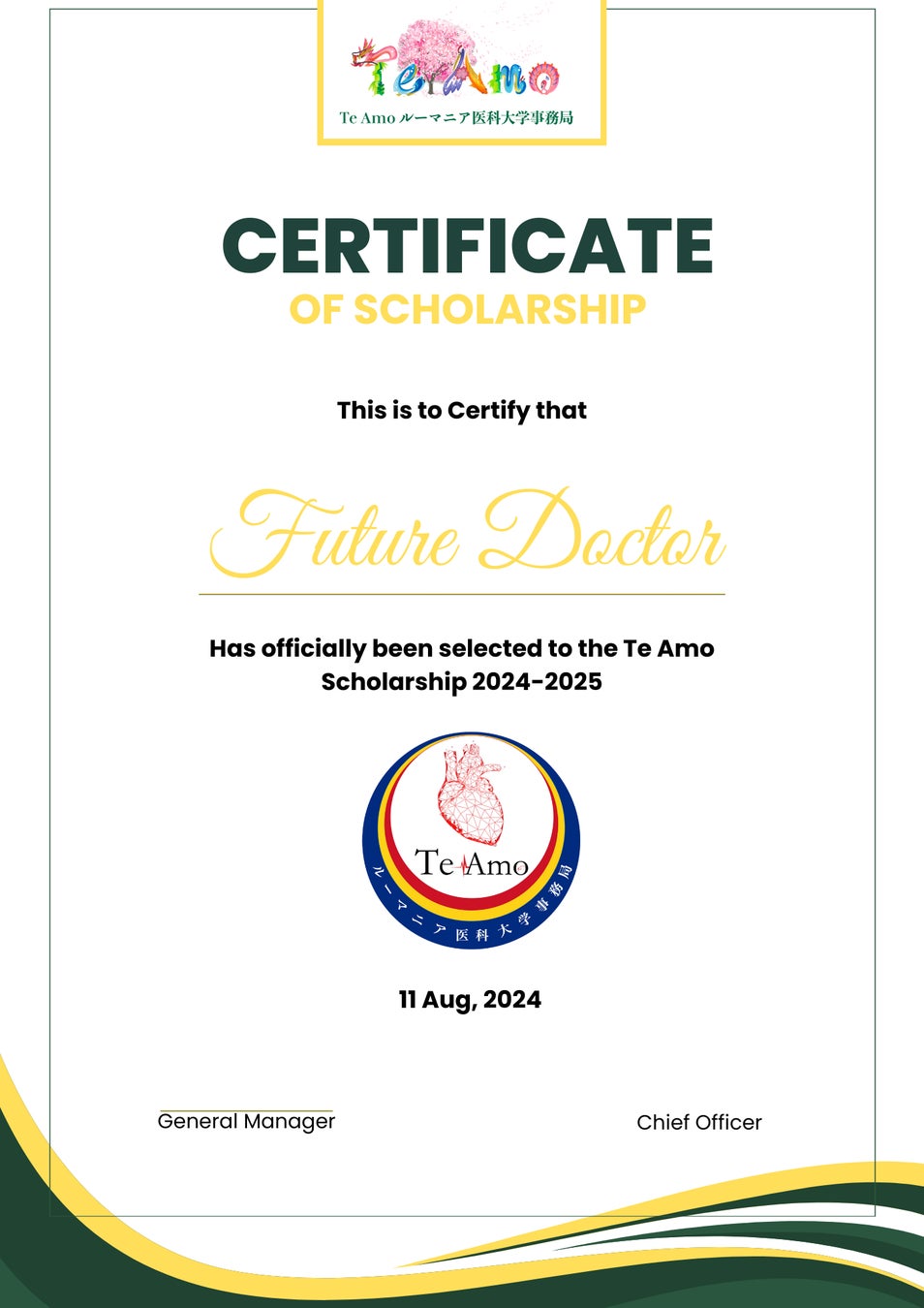 Te Amo ルーマニア医学部2024年11月から従来の給付型奨学金制度に加えて、新たに第二種奨学金制度を設立 「海外医学部」