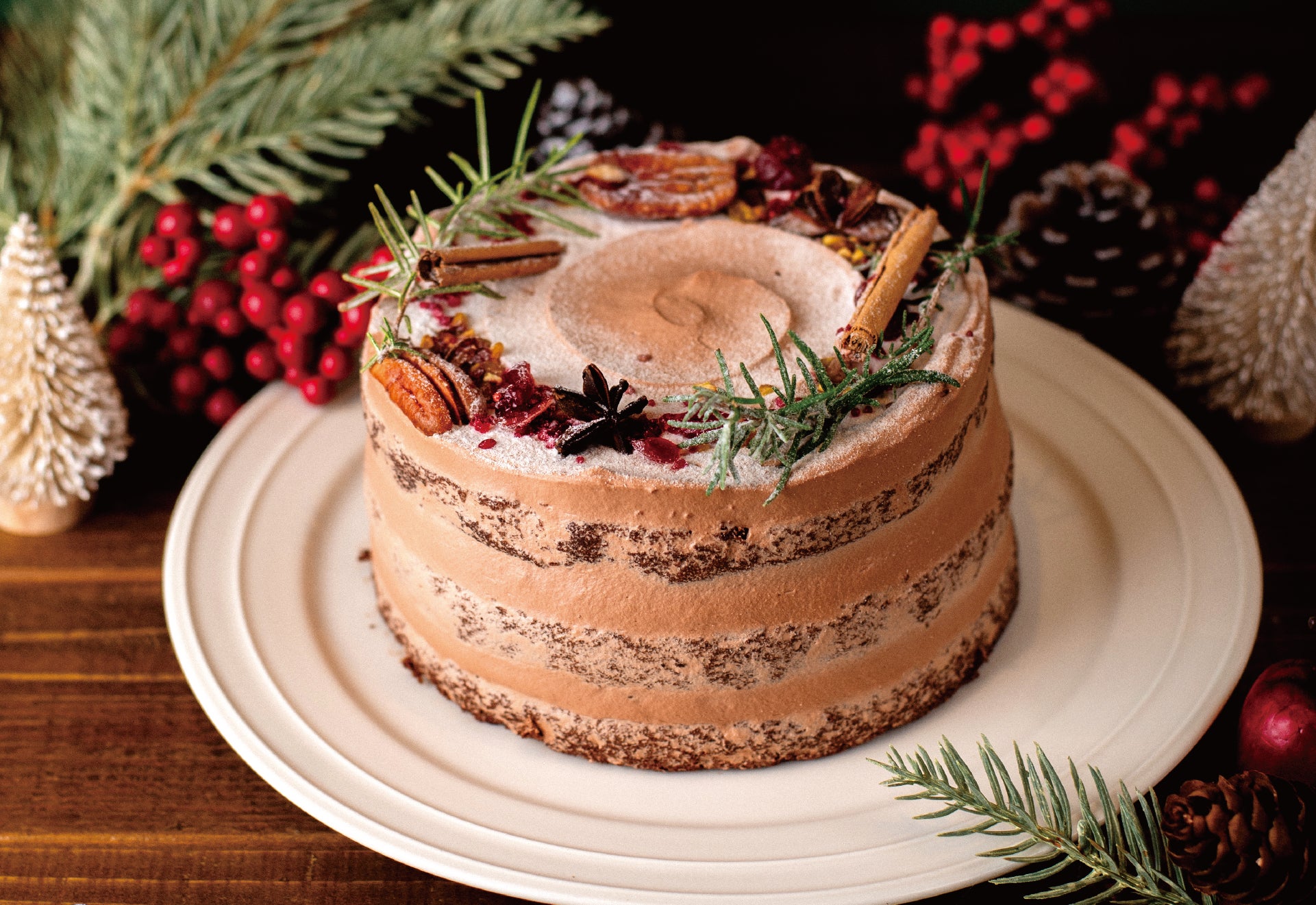 しっとりチョコレートスポンジに、自家製いちごジャムの優しい甘酸っぱさが特長。ナッツとスパイスが香る、心あたたまるクリスマスケーキです。