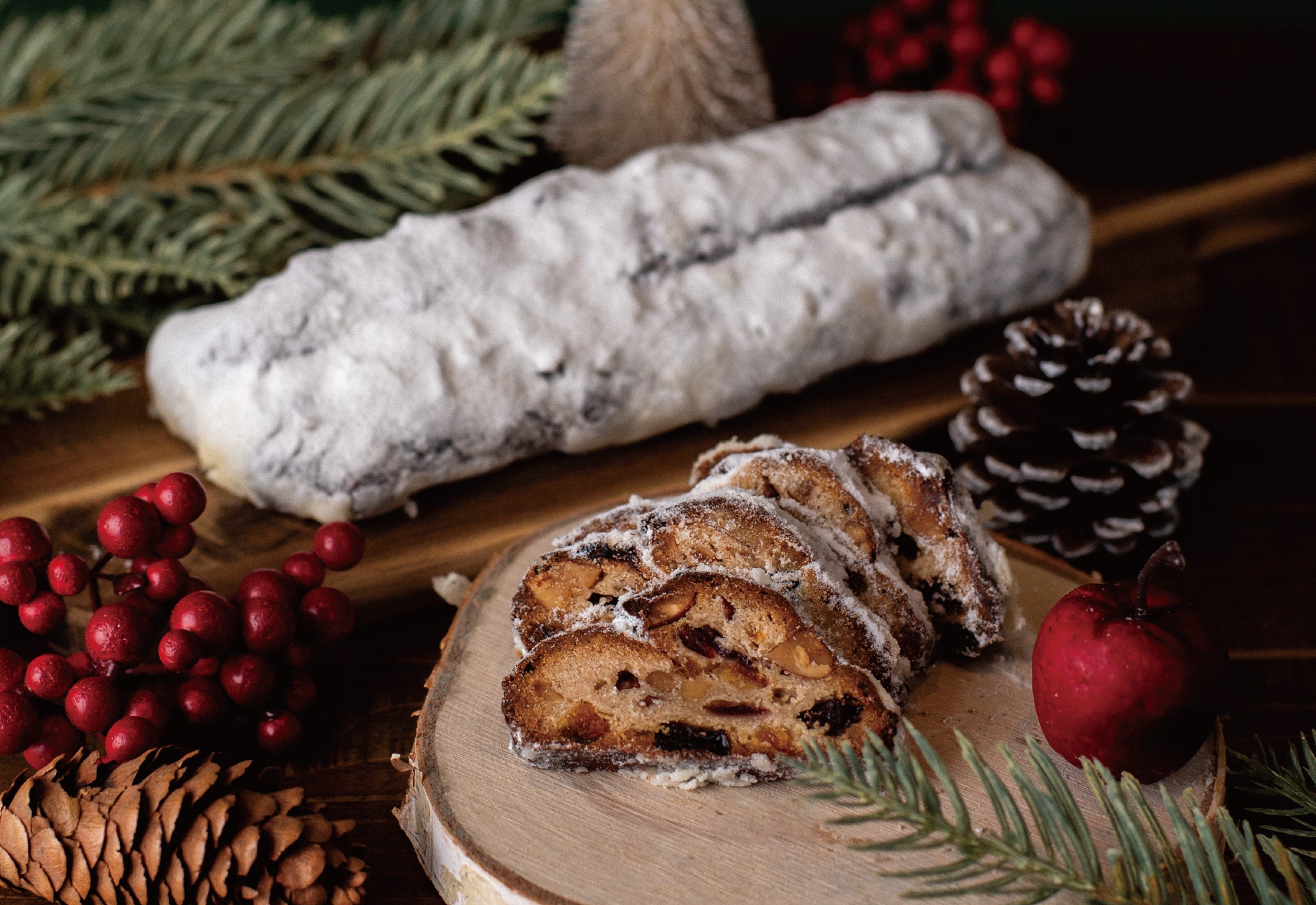 今年初登場となるオリジナルの手作りシュトーレンです。スパイス香る生地に、ミックスフルーツやナッツをたっぷり混ぜ込み、時間をかけて熟成させました。クリスマスまでのアドベント期間も、日ごとに深まる味わいをお楽しみいただけます。