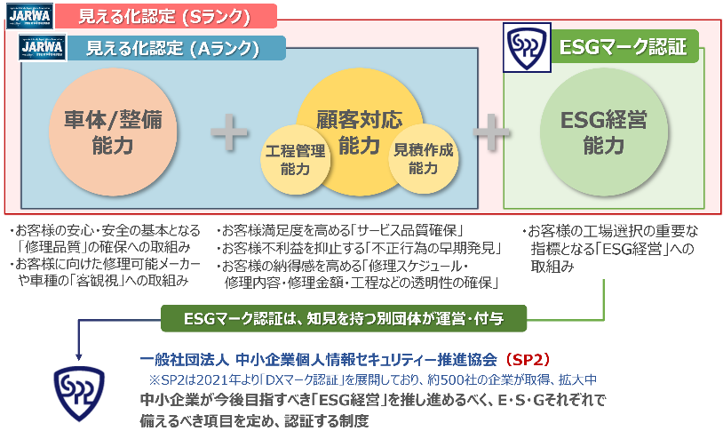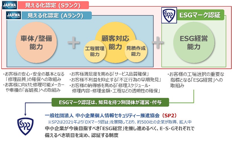「ESGマーク認証制度」が、日本自動車車体補修協会が推進する「自動車修理"見える化"認定制度」内に「ESG経営能力」の評価指標として採用