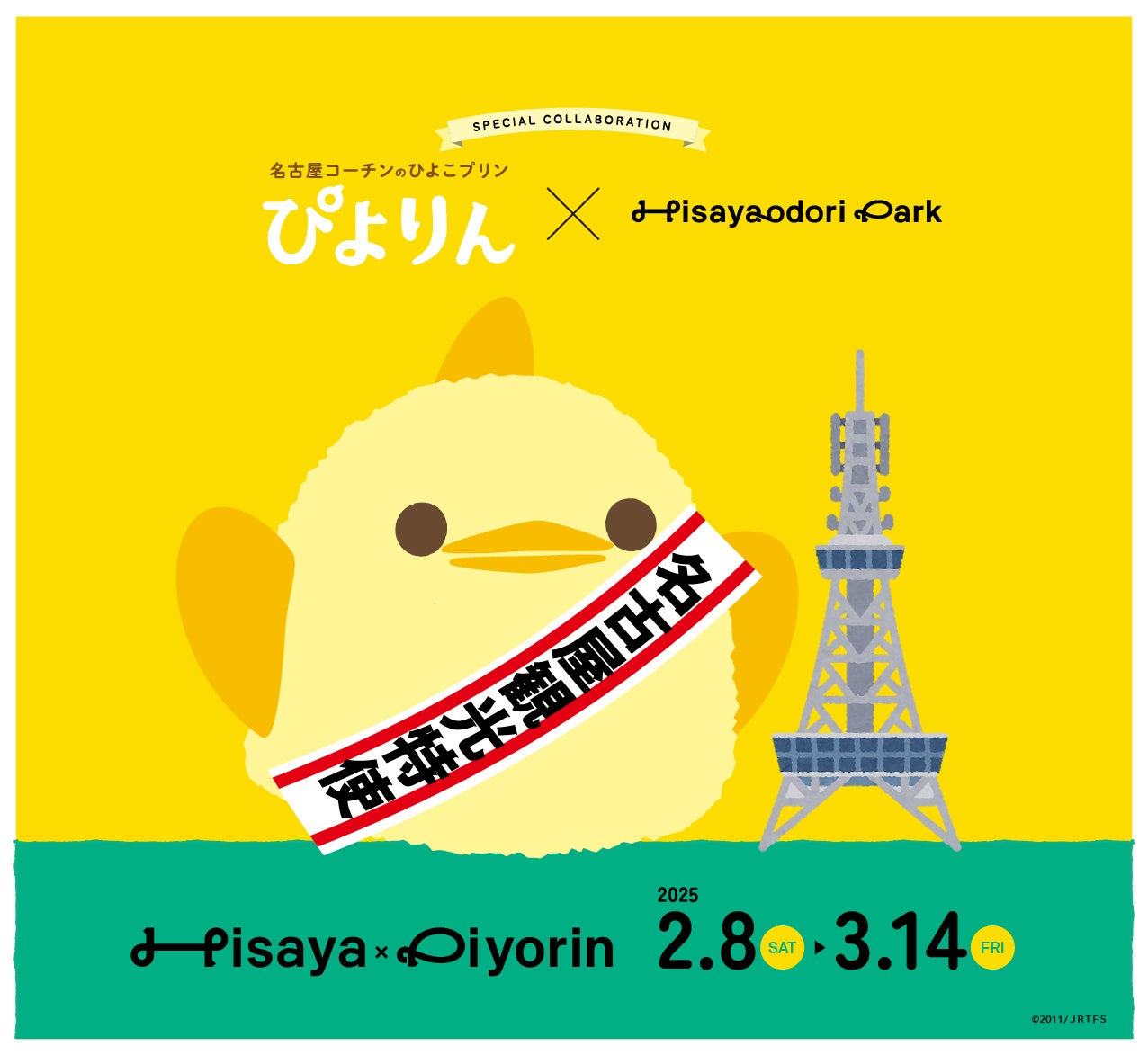 名古屋コーチンのひよこプリン「ぴよりん」とHisaya-odori Parkが初コラボレーション!期間中、ZONE4 ミズベヒロバに登場するぴよりんをモチーフにしたインスタレーションや、店舗でもらえるオリジナルグッズ、おトクなクーポンがもらえるキーワードラリーなど、園内がふわふわでかわいいぴよりんでいっぱいに!