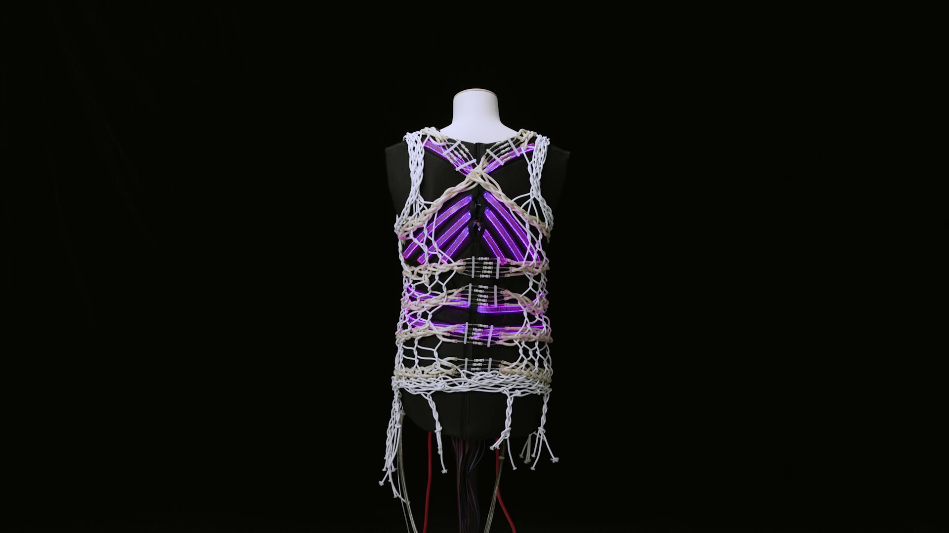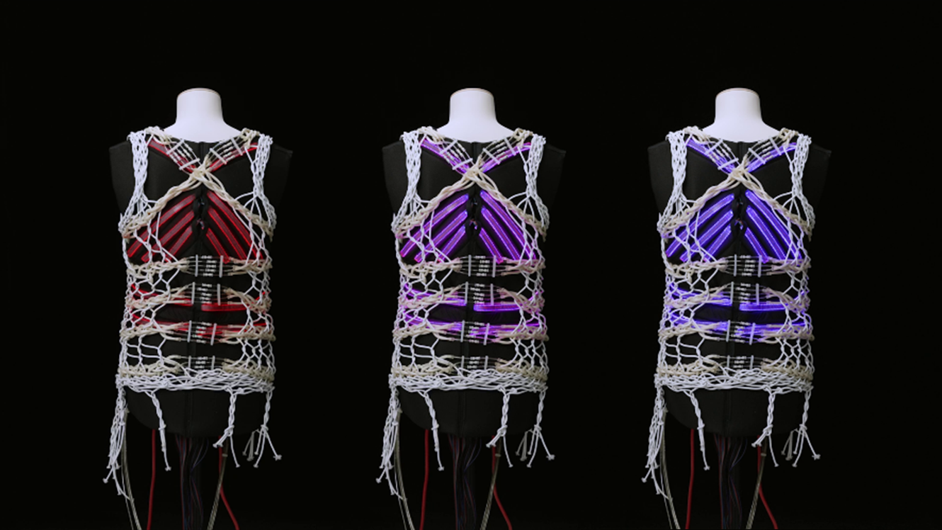 自分で自分をだきしめる新体験 ベスト型ハグ体験テクノロジー「Hugtics」最新作を発表。ハグによる幸福感や自己肯定感など、メンタルヘルスの向上に貢献