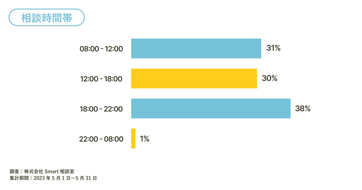 併せて、2023年5月1日〜2023年5月31日の1ヶ月間における、Smart相談室で相談が行われた時間帯を集計しました。