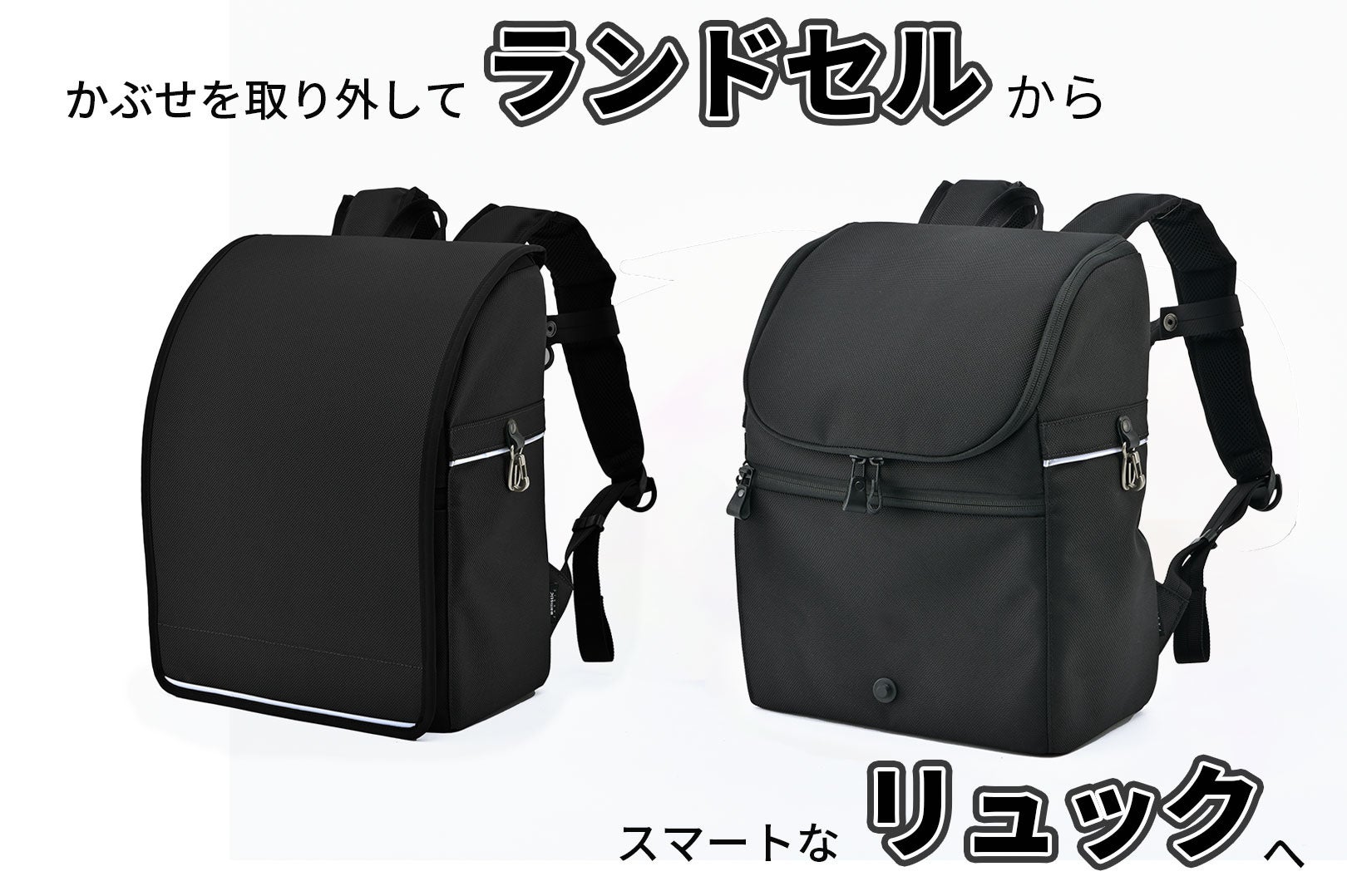 ④【進化するデザイン】かぶせが取れて、リュックに変身!
