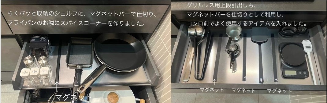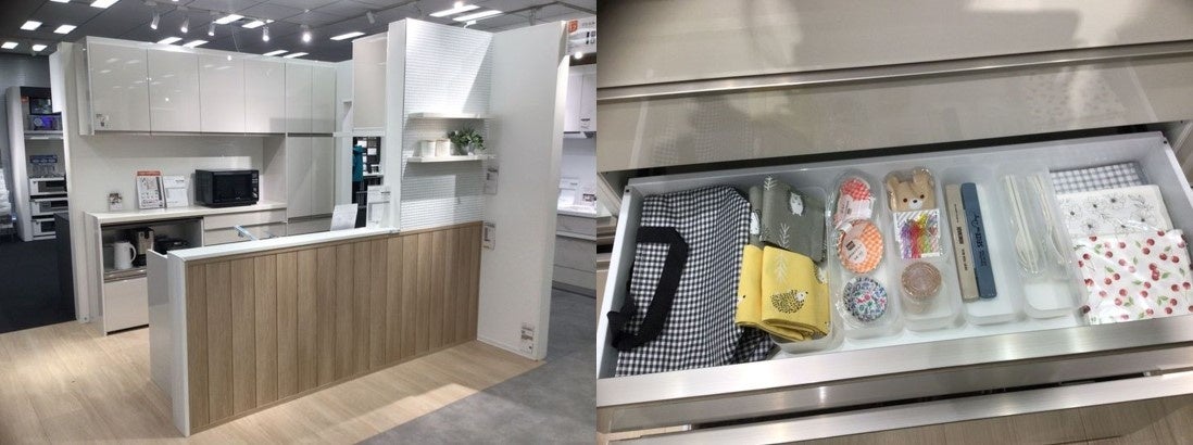 スッキリした収納の実現と清掃性の向上というメリットがしっかり伝わる展示。