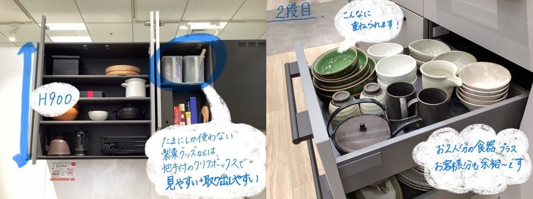 リシェルおすすめの4段引出に和食器をたっぷり収納し、引き出しやすさと収納力をアピール。
