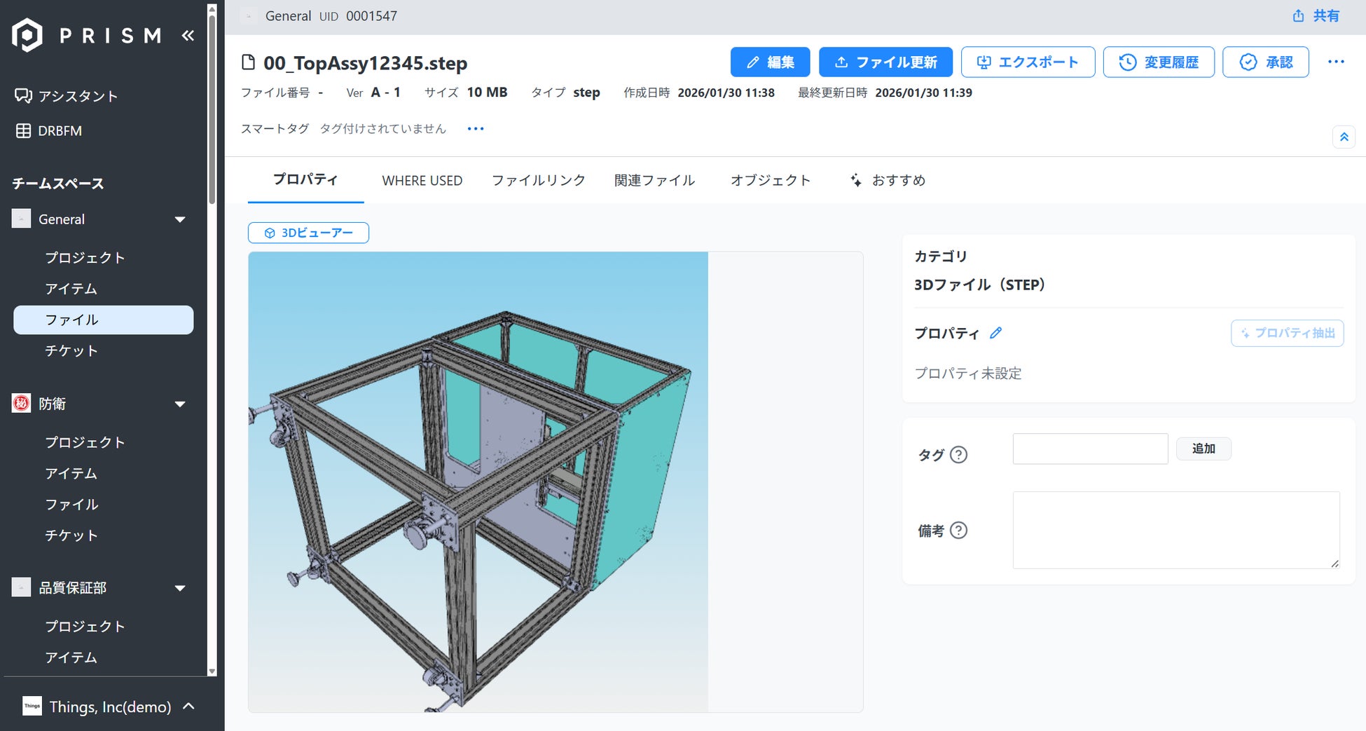 「製造業における知の掘り起こし」をテーマに、エンジニアリングチェーンのDXに挑む株式会社Things(本社:東京都港区、代表取締役:鈴木 敦也、以下「当社」)は、製品ナレッジ活用基盤「PRISM(プリズム)」の新機能として、PLM上で3D CADデータを直接確認・活用できる「3Dビューアー機能」を提供開始しました。